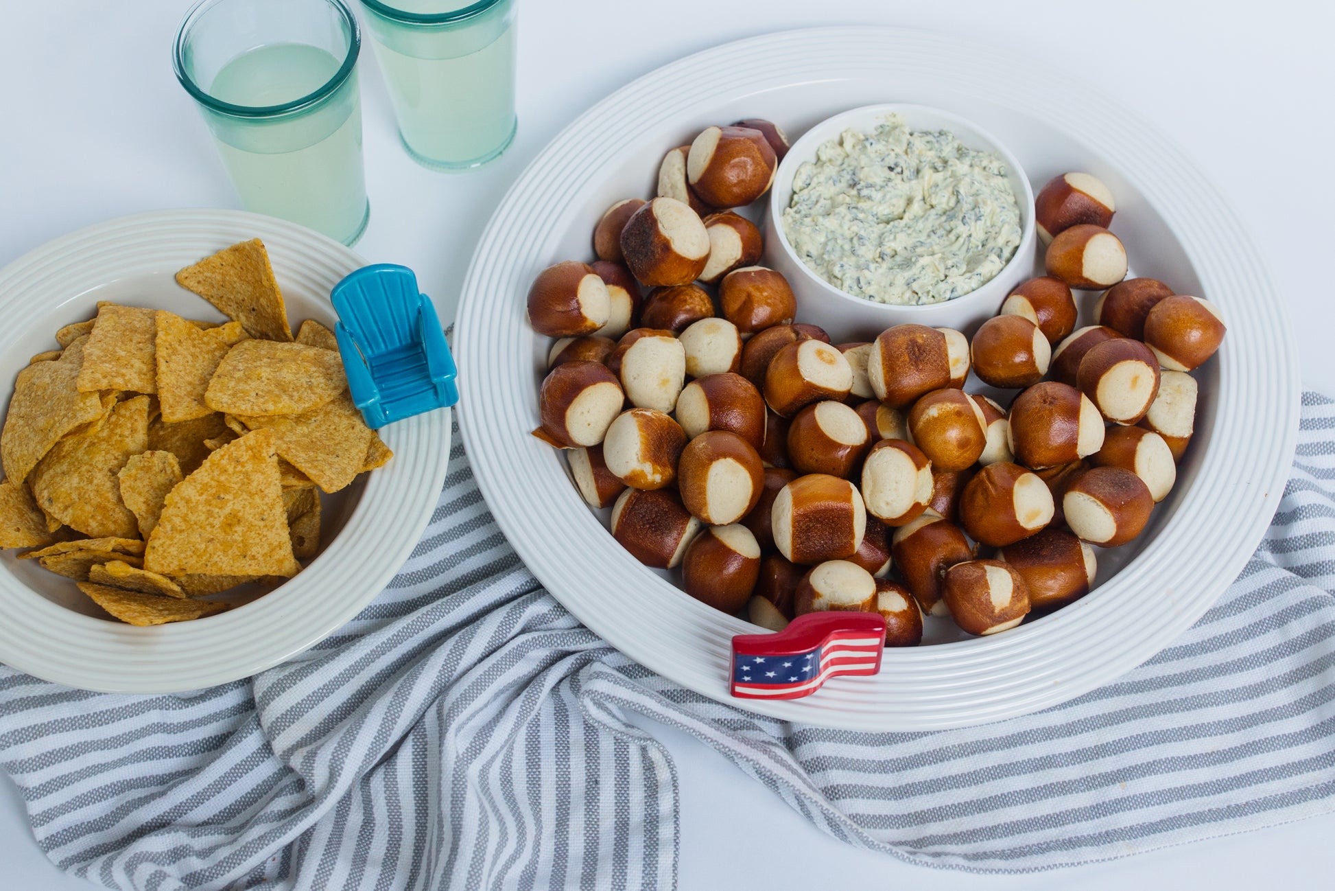 Our a-nora-ble chip and dip platter is made of high-quality melamine, making it durable and convenient for outdoor use. Its functional design makes it easy for small dip containers to fit perfectly into the platter, mess-free!
